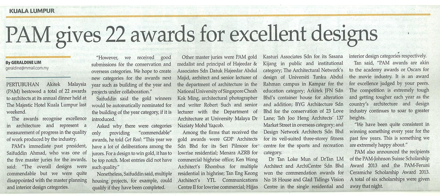 23LoveLane won the Gold Award for Conservation at the Malaysian Institute of Architects PAM Awards 2013...