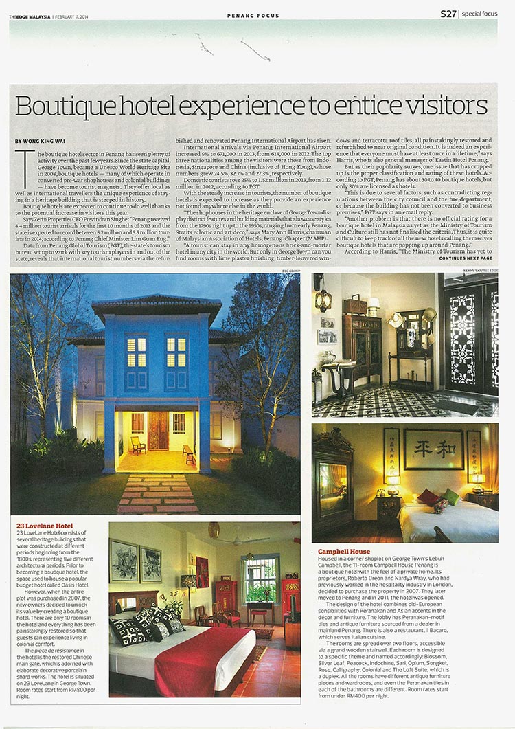 Popularity rise in George Town’s Boutique Hotels