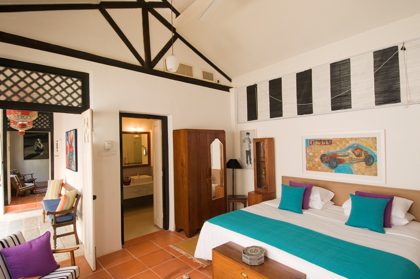 With Black & White blinds, bold artwork, and contrasted with splashes of vibrant carpets and upholstery, it is perfect for single guests or couples.