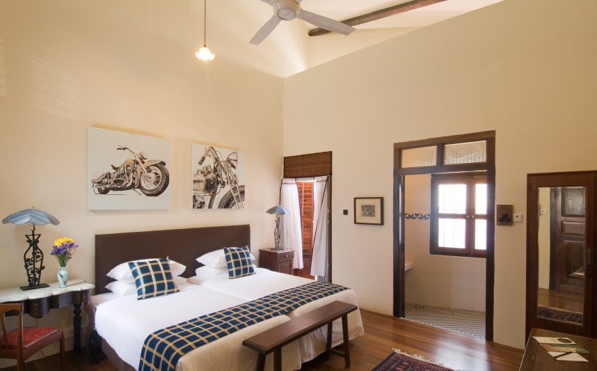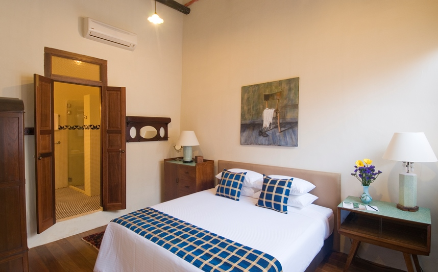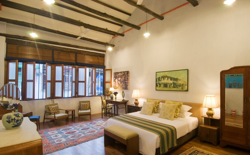 What we call the Blue House, this 3 bedroom pre-war shop house can be rented as one whole unit for groups and families or as separate suites for individual guests. Designed as a family home with a living room and a fully equipped kitchen on the Ground Floor, guests can also relax in the cosy family hall on the First Floor. Muntri Suites is 3 minute walk from the main building.